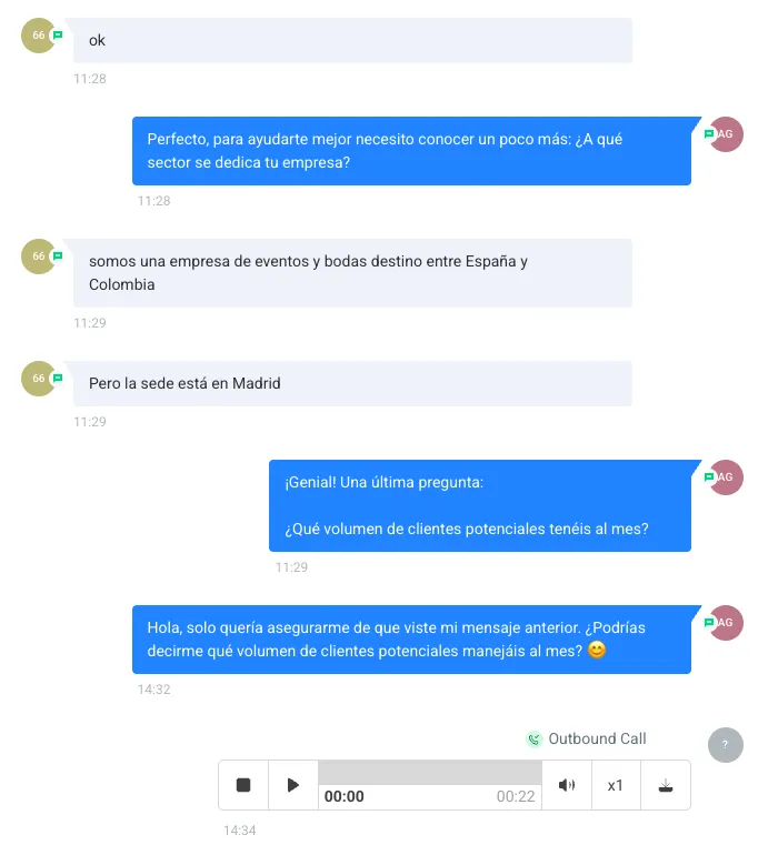 Reintentos inteligentes de contacto con el Lead a través de WhatsApp, SMS y/o Email si no hay respuestas.
